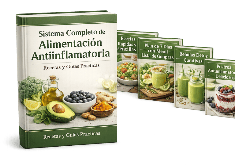 Un sistema práctico con más de 100 recetas antiinflamatorias diseñadas para ayudarte a sentirte más ligero, mejorar tu digestión y reducir la hinchazón sin dietas extremas.